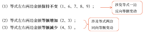 以上類型經(jīng)濟業(yè)務的發(fā)生均不會影響會計等式的平衡關系,具體分為3種情形: