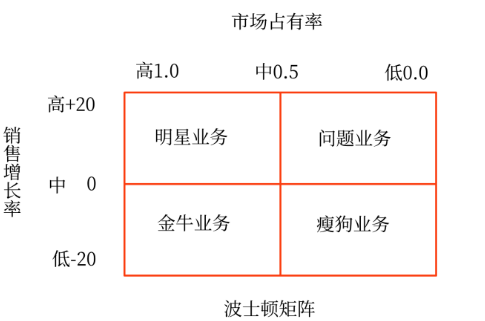 波士頓矩陣是根據(jù)業(yè)務(wù)增長率和市場占有率兩項指標,將企業(yè)所有的戰(zhàn)略單位分為“明星、問題、金牛、瘦狗”四大類,并以此分析企業(yè)產(chǎn)品或服務(wù)的競爭力,為科學(xué)選擇企業(yè)戰(zhàn)略提供依據(jù)的一種投資組合分析方法。這種方法是把企業(yè)生產(chǎn)經(jīng)營的全部產(chǎn)品或業(yè)務(wù)組合作為一個整體進行分析,通常用來分析企業(yè)相關(guān)經(jīng)營業(yè)務(wù)之間現(xiàn)金流量的平衡問題,以便將企業(yè)有限的資源有效地分配到合理的產(chǎn)品結(jié)構(gòu)中去。