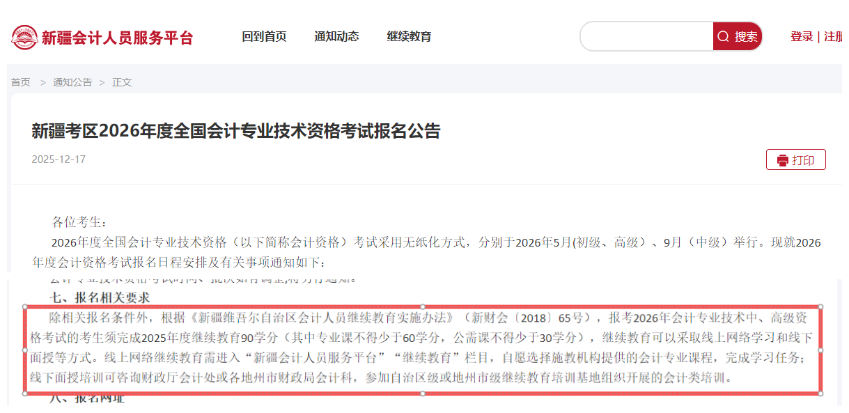 2026年河南、黑龍江、青海、山東、新疆、兵團(tuán)等地在中級(jí)會(huì)計(jì)報(bào)考條件中明確提出:應(yīng)具有規(guī)定年度的繼續(xù)教育記錄,或是完成規(guī)定年限的繼續(xù)教育。