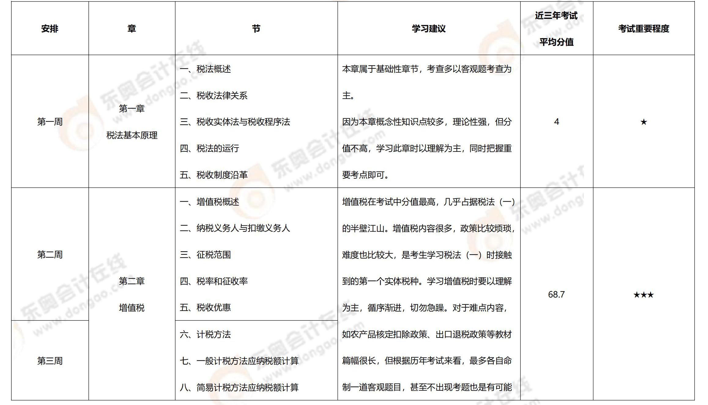 稅法一基礎(chǔ)階段學(xué)習(xí)計(jì)劃