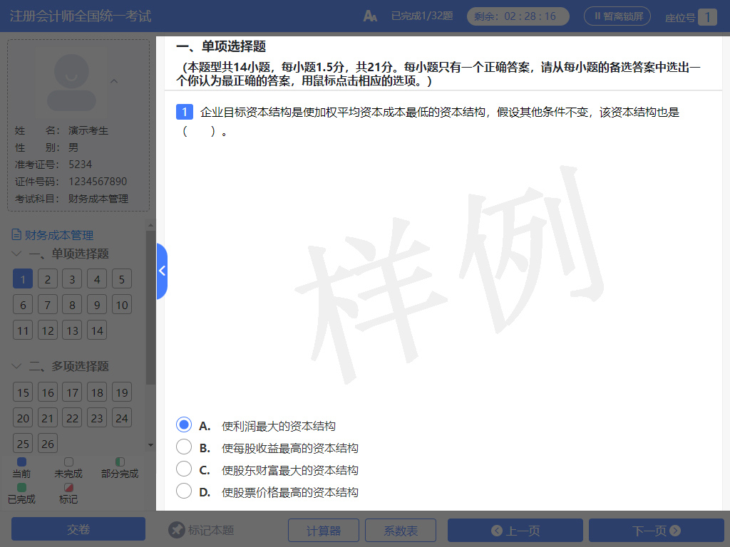 新增輔助計算功能!26年注會考試機考模擬練習(xí)網(wǎng)站操作指南