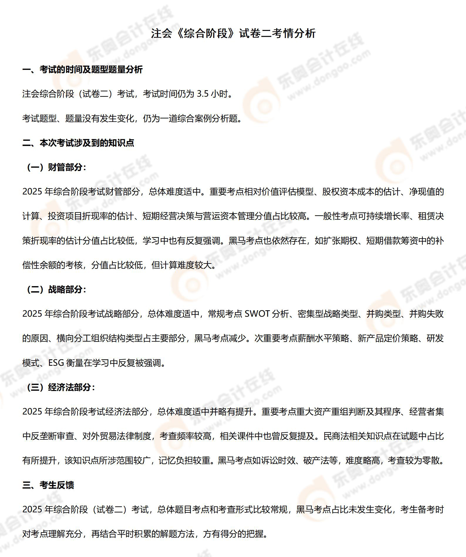 2025年注會綜合階段試卷二考情及考點總結(jié)(考生回憶版)