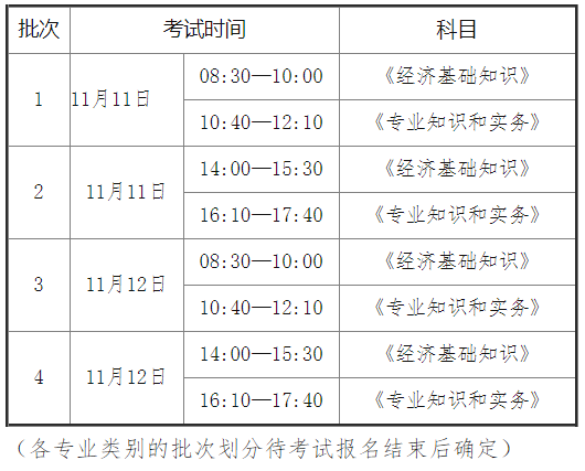 2023年初級、中級經(jīng)濟專業(yè)技術(shù)資格考試批次設置及時間安排表