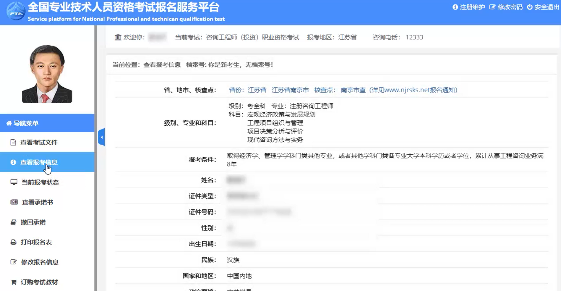 (3)如無需修改報(bào)名信息后可退出報(bào)名,查看報(bào)考狀態(tài):