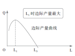 | (1)在勞動投入達到L1之前,勞動的邊際產(chǎn)量為正數(shù),并且遞增,所以總產(chǎn)量以遞增的速度增加,總產(chǎn)量曲線向上傾斜,并且斜率遞增,即凸向L軸 (2)當(dāng)勞動投入在L1和L3之間時,勞動的邊際產(chǎn)量遞減,但為正數(shù),所以總產(chǎn)量是以遞減的速度增加,總產(chǎn)量曲線向上傾斜,但斜率遞減,即凸向Q軸 (3)當(dāng)勞動投入量為L3時,勞動的邊際產(chǎn)量為0,總產(chǎn)量達到最大值 (4)繼續(xù)增加勞動投入,勞動的邊際產(chǎn)量為負數(shù),所以總產(chǎn)量開始減少 |