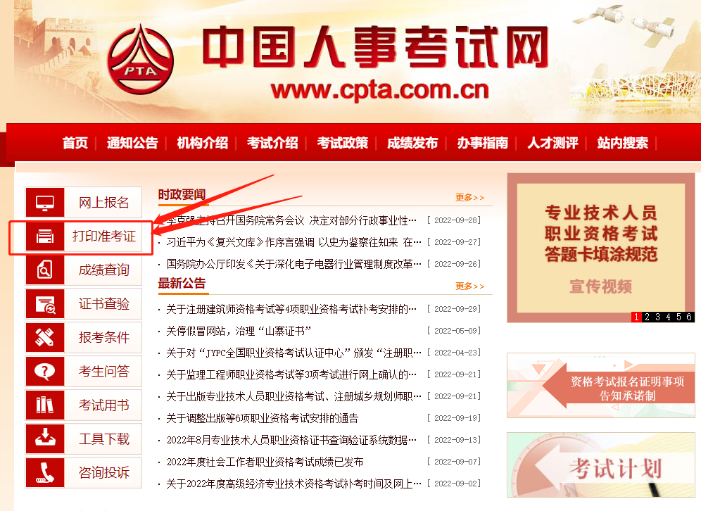 1、首先登錄官網(wǎng)。進(jìn)入中國人事考試網(wǎng)(http://www.cpta.com.cn/)。