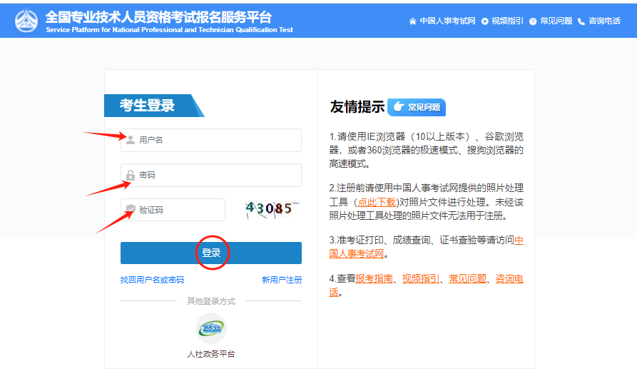 登錄“全國(guó)專業(yè)技術(shù)人員資格考試報(bào)名服務(wù)平臺(tái)”