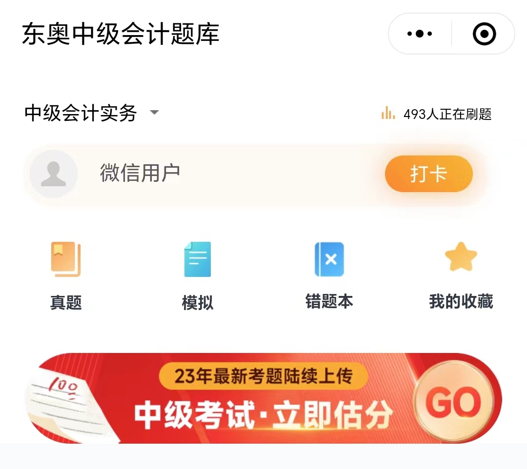 | 入口一:考生可以進(jìn)入“東奧中級(jí)會(huì)計(jì)題庫(kù)”小程序,進(jìn)行預(yù)約估分!具體估分預(yù)約步驟如下: