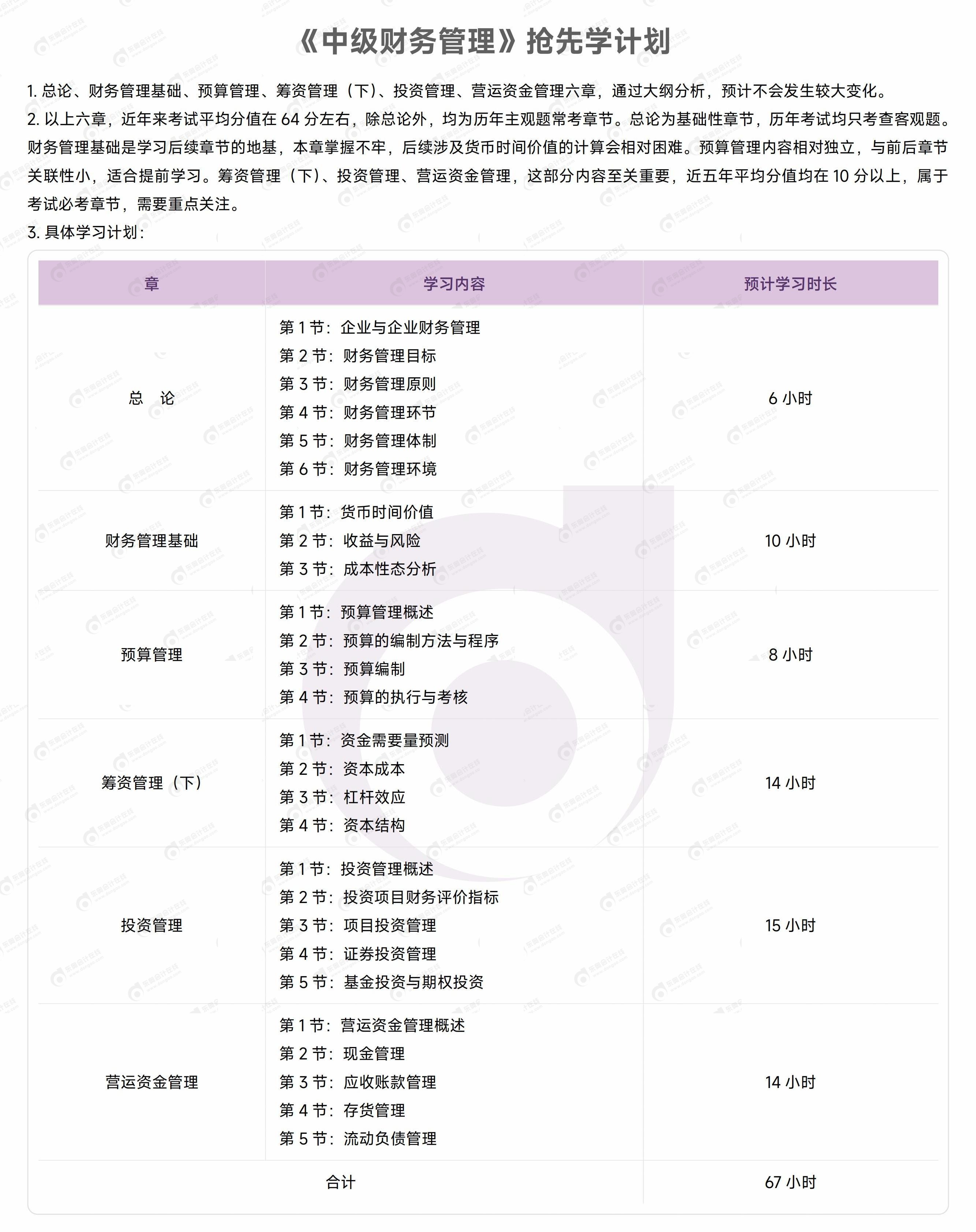 中級會計各科搶先學(xué)內(nèi)容及學(xué)習(xí)時長建議